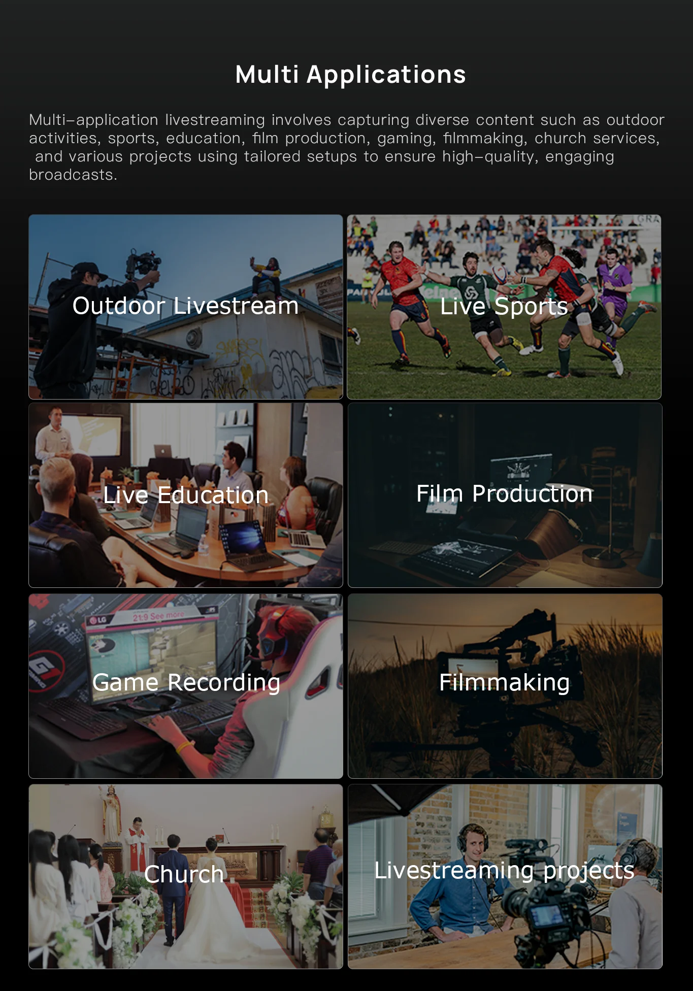 Live Streaming Switcher ที่มีระบบ Down Streaming ทำให้การผลิตรายการมีความหลากหลายมากขึ้น คุณสามารถแทรกวิดีโอที่บันทึกไว้ล่วงหน้า กราฟิก โลโก้ หรือเนื้อหาโฆษณาได้อย่างง่ายดาย การทำงานนี้ช่วยเพิ่มความเป็นมืออาชีพให้กับรายการของคุณ และยังช่วยให้คุณสามารถจัดการเนื้อหาที่ซับซ้อนได้โดยไม่จำเป็นต้องใช้อุปกรณ์ภายนอกเพิ่มเติม