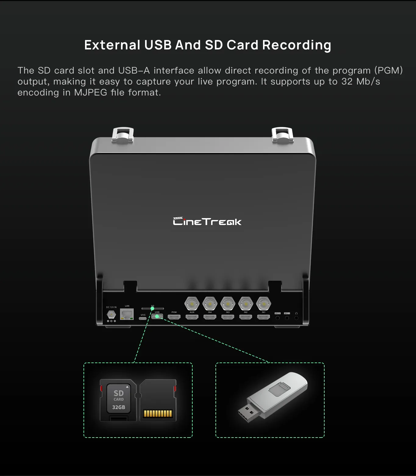 การรองรับการ์ด SD หมายความว่าคุณสามารถเก็บไฟล์วิดีโอจำนวนมากไว้ในอุปกรณ์ขนาดเล็ก พร้อมเปลี่ยนได้ง่ายตามความต้องการ สิ่งนี้เป็นประโยชน์อย่างยิ่งสำหรับการผลิตรายการที่ต้องใช้คอนเทนต์หลากหลายหรือต้องเตรียมแผนสำรอง ความสามารถในการเข้าถึงและใช้งานคอนเทนต์จากหลายแหล่งนี้ทำให้ Stream Master เป็นเครื่องมือที่ทรงพลังสำหรับการสร้างสรรค์รายการสดที่น่าสนใจ